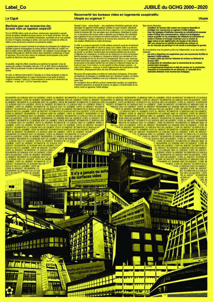 Il existe plus de 250’000 m2 de bureaux inoccupés et obsolètes, ce qui équivaut à soixante terrains de football. La revalorisation de ces espaces vides en logements coopératifs s’est rapidement imposée comme une piste de réflexion qui a mené à l’écriture d’un manifeste présenté pour ce concours dans la catégorie utopie.